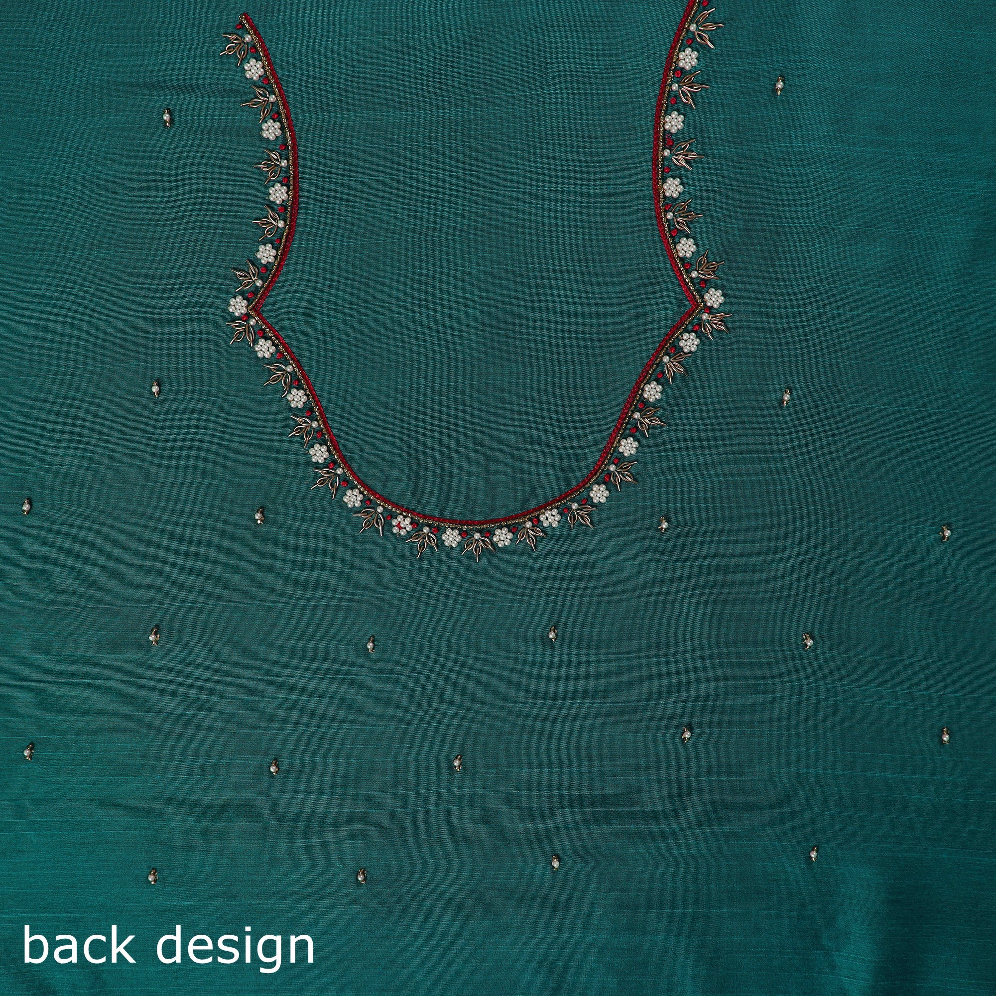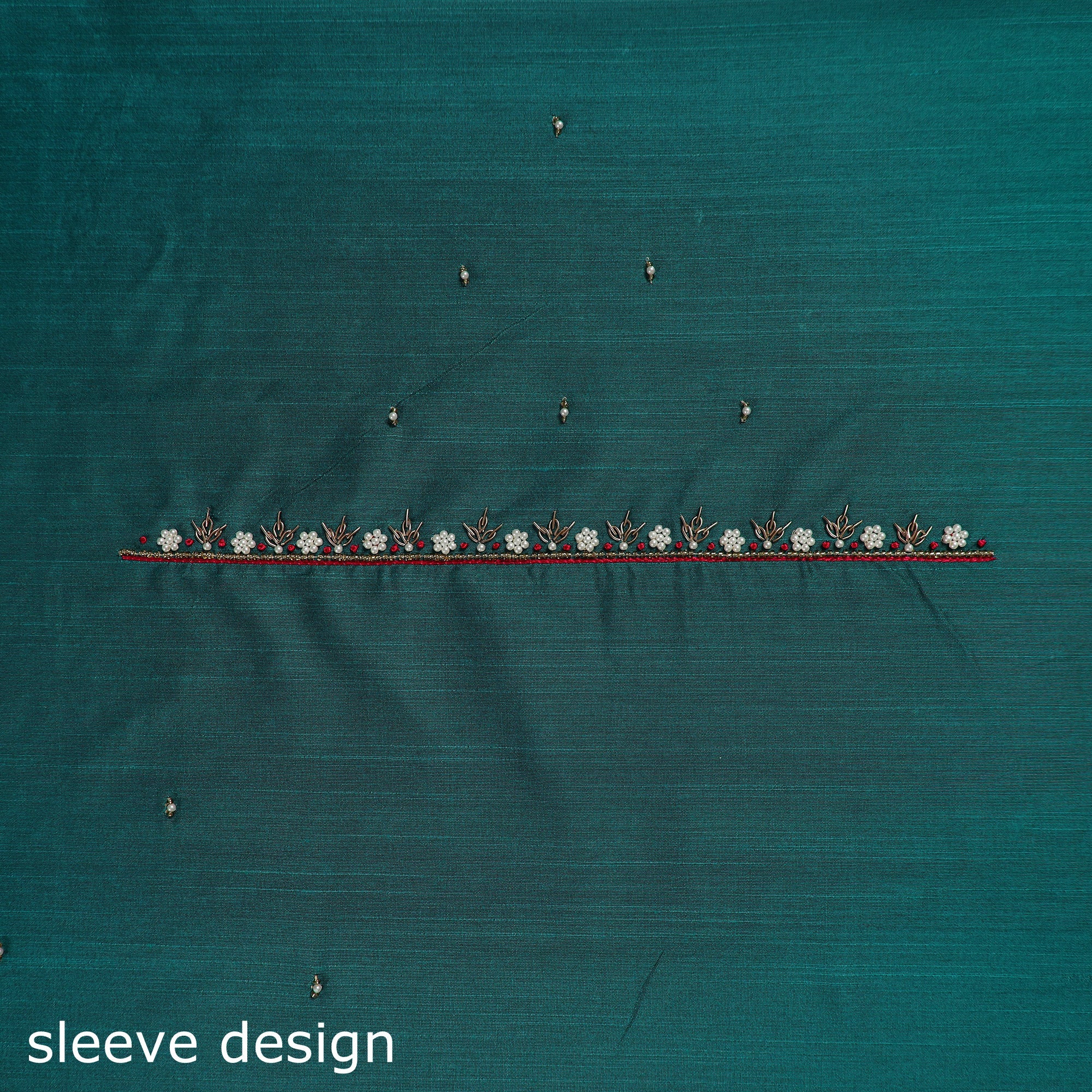 Green - Zardozi Hand Embroidery Slub Silk Plain Blouse Piece 29