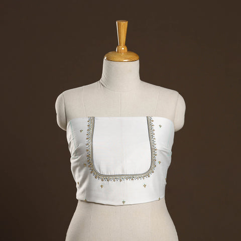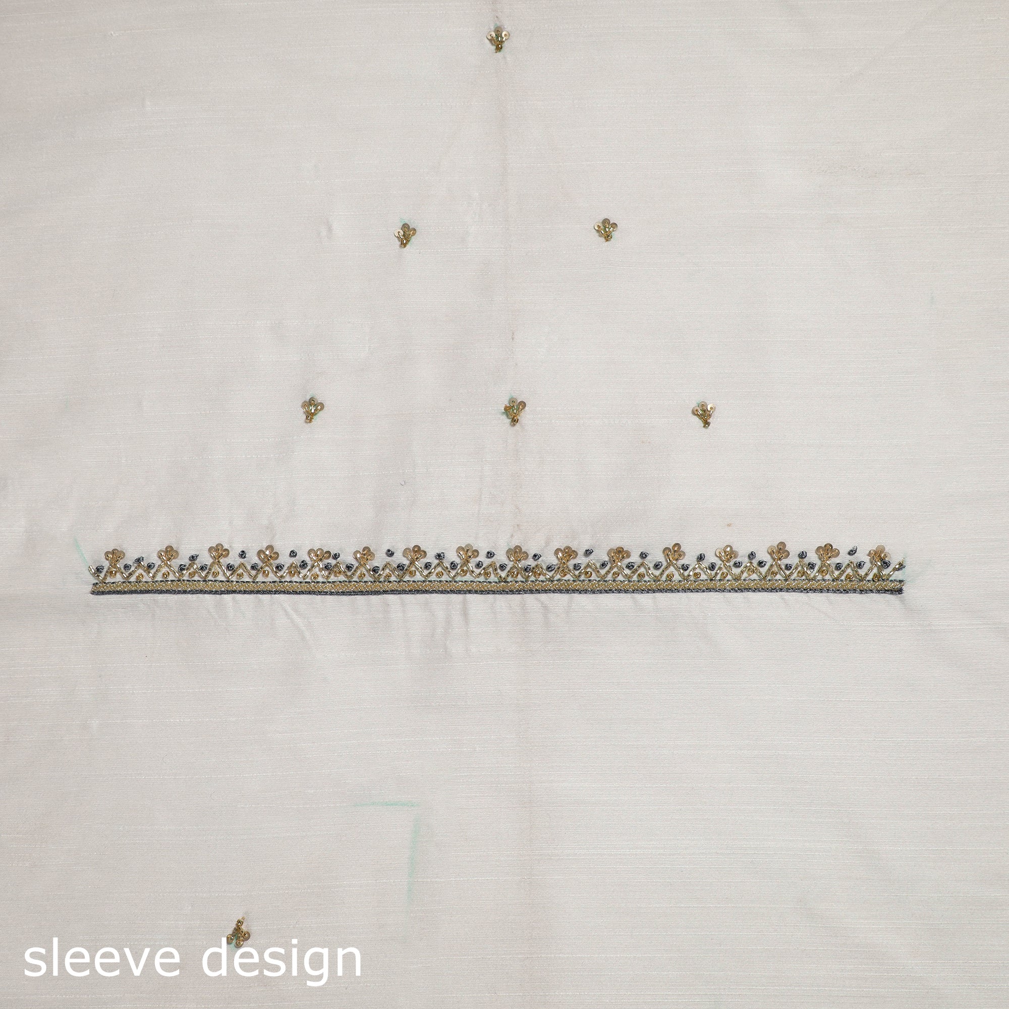 This white zardozi hand-embroidered slub silk blouse piece features elegant detailing that enhances its festive appeal. The slub silk fabric keeps it stylish yet comfortable. You can tailor it your way, whether simple, trendy, or traditional. A versatile pick for everyday wear as well as special occasions.