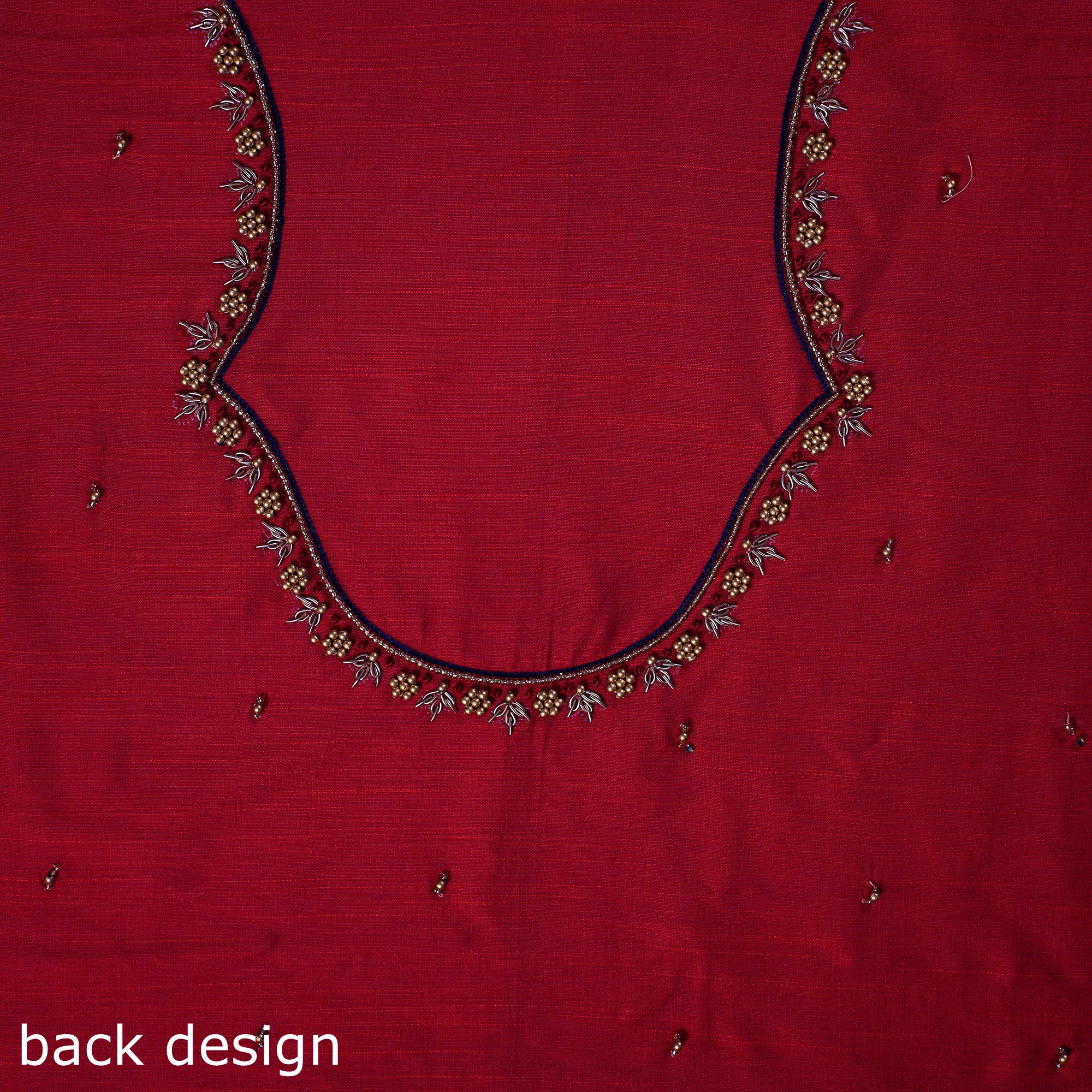• Red - zardozi hand embroidery slub silk plain blouse piece