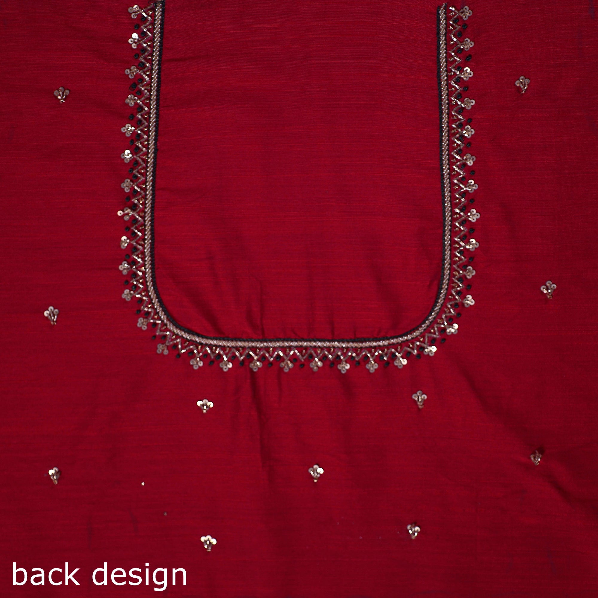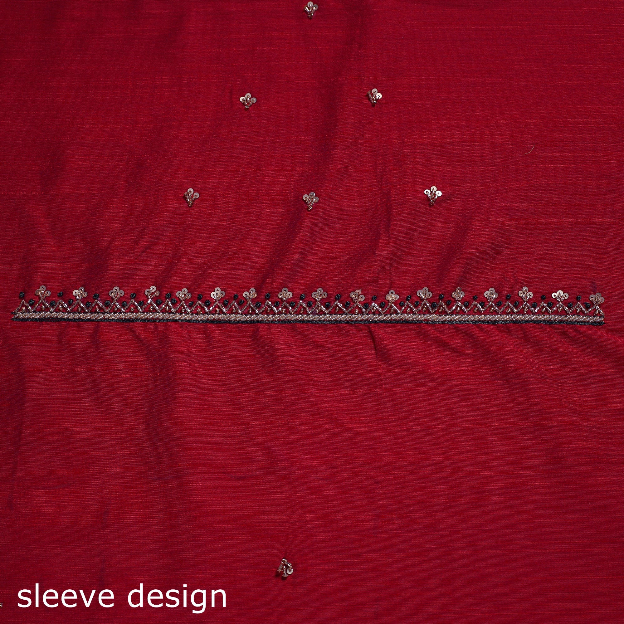 • Red - zardozi hand embroidery slub silk plain blouse piece