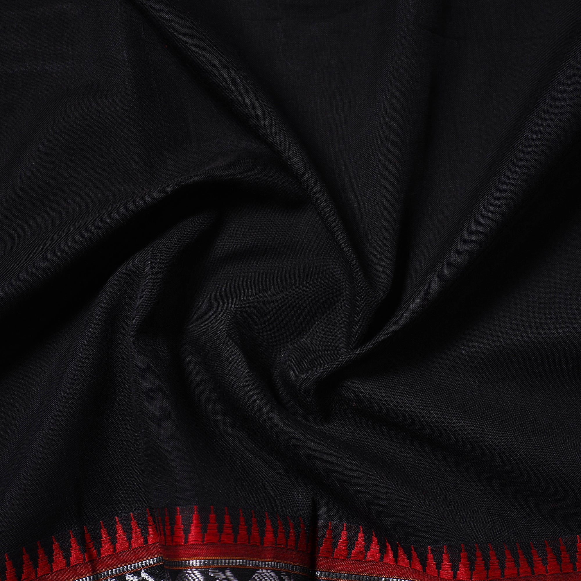 Black dharwad cotton fabric with a traditional zari-woven border from Dharwad, Karnataka. This is a machine-made fabric with no handmade process involved. Perfect for a range of attire, home decor, and craft projects, it adds a touch of heritage to your creations.