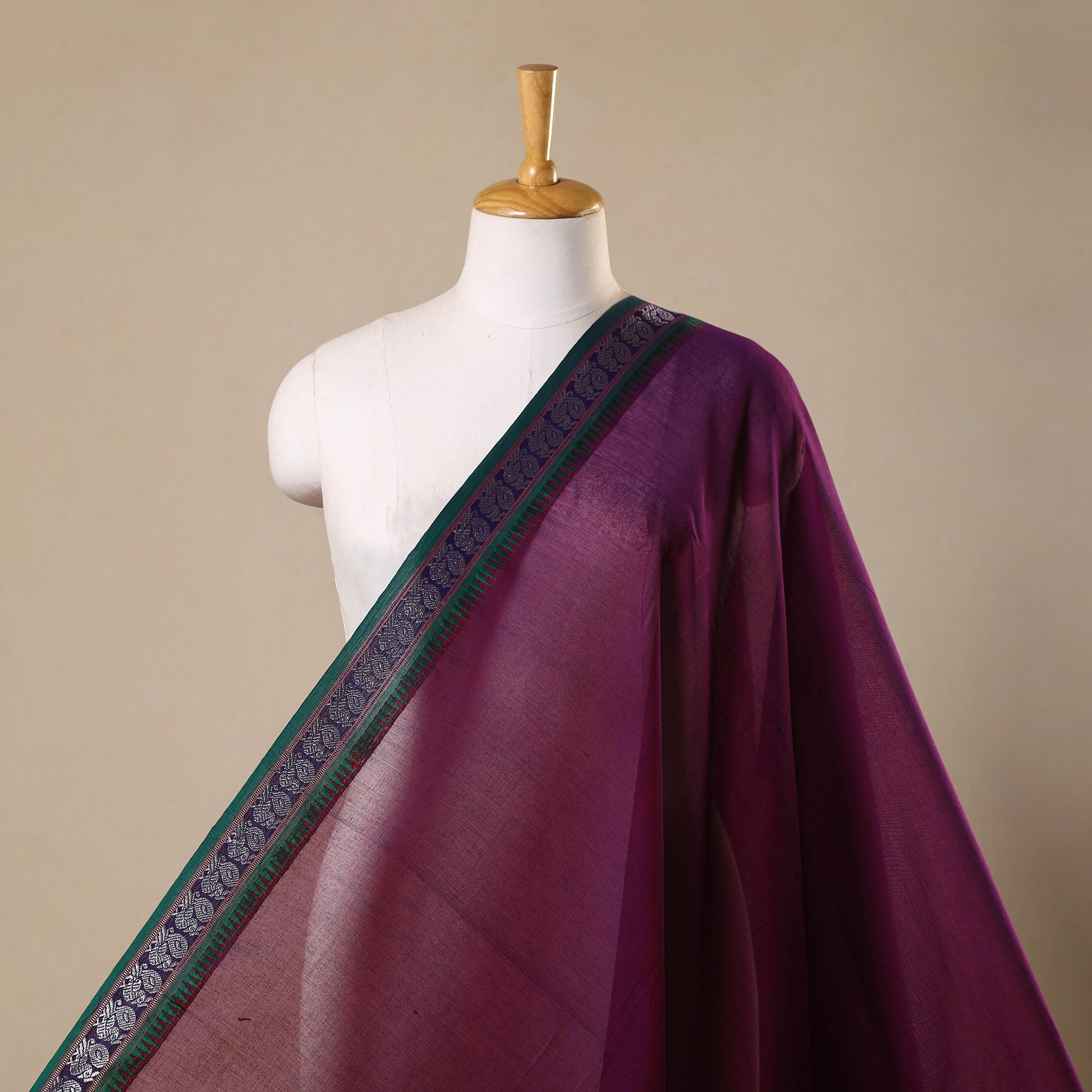 Purple dharwad cotton fabric with a traditional zari-woven border from Dharwad, Karnataka. This is a machine-made fabric with no handmade process involved. Perfect for a range of attire, home decor, and craft projects, it adds a touch of heritage to your creations.