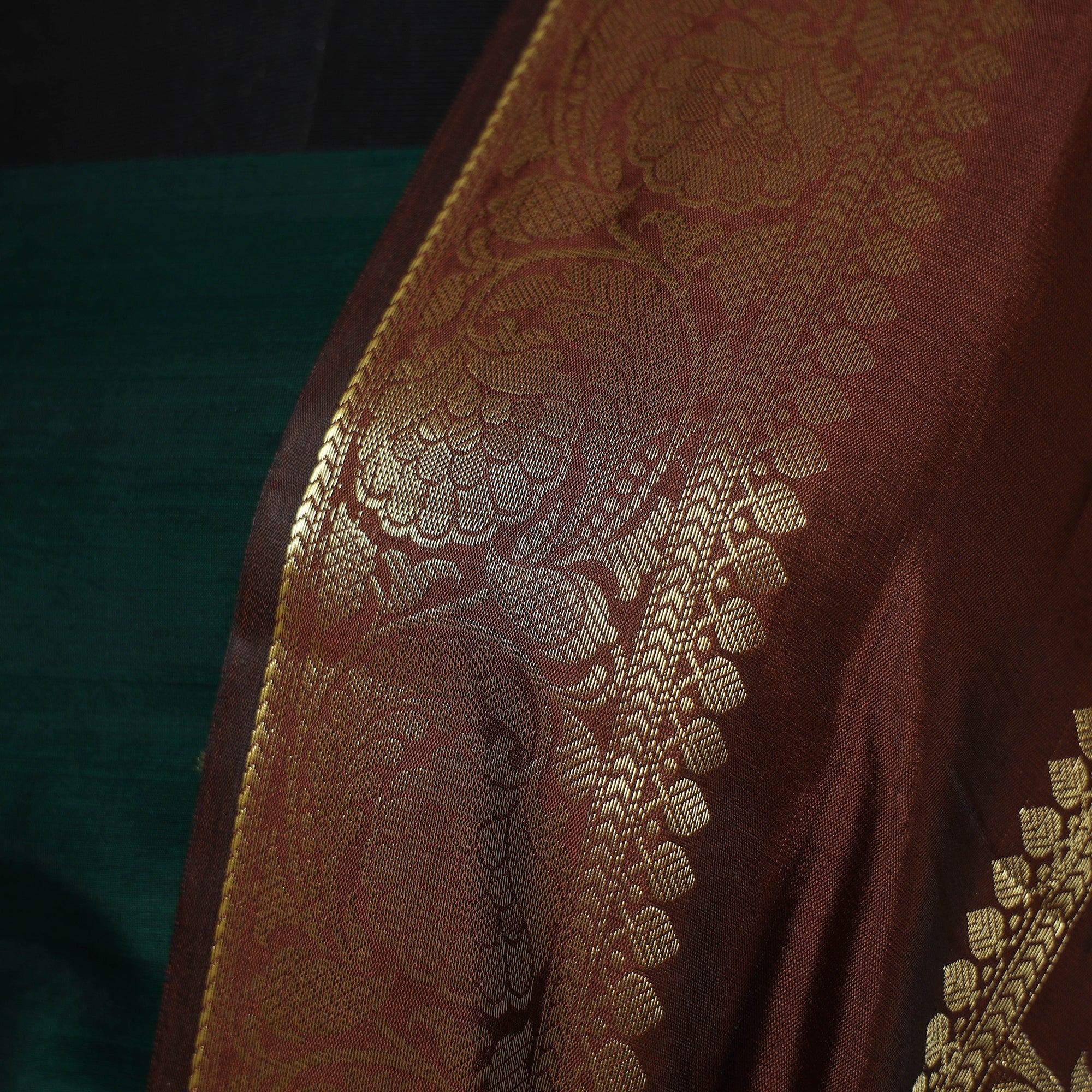 Green - Brocade Handloom Pure Silk Banarasi Stole with Tassels 12