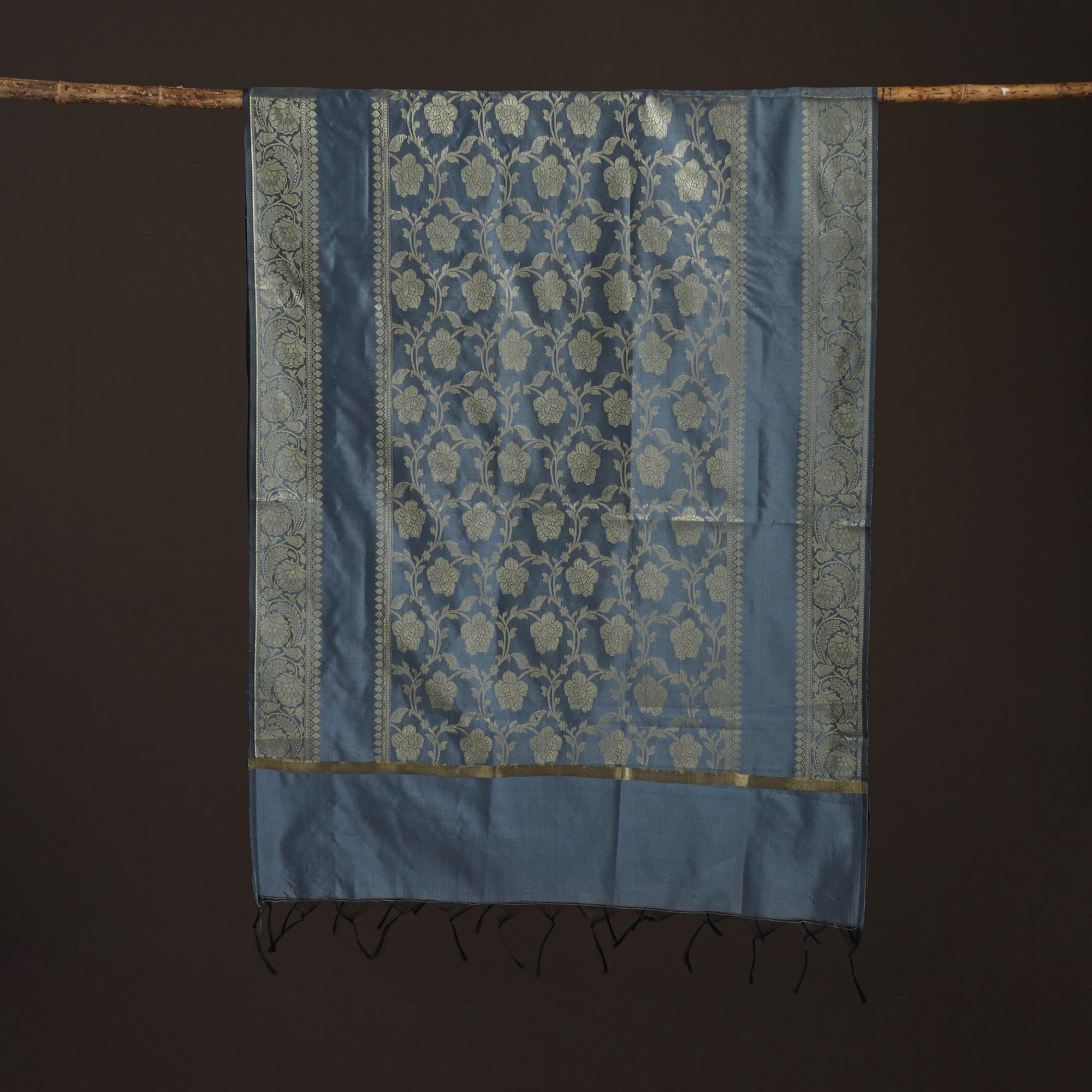 Blue banarasi dupatta is crafted in varanasi and features beautiful zari work with tassels at the ends. The zari design adds a graceful look, while the tassels give it a neat finish. Made from art silk, it is lightweight, comfortable and easy to drape. You can pair this dupatta with kurta sets, salwar suits and festive outfits. It is suitable for daily wear, puja, small functions and occasions.