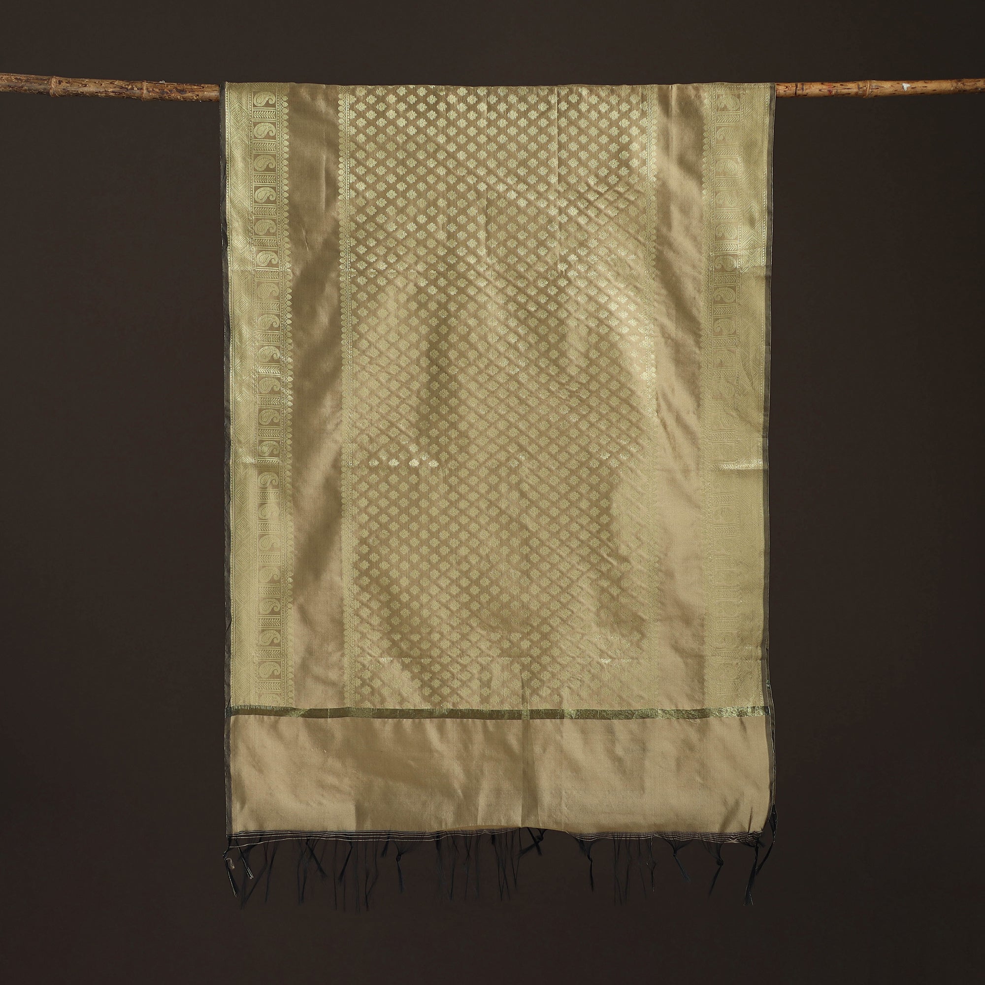 Beige banarasi dupatta is crafted in varanasi and features beautiful zari work with tassels at the ends. The zari design adds a graceful look, while the tassels give it a neat finish. Made from art silk, it is lightweight, comfortable and easy to drape. You can pair this dupatta with kurta sets, salwar suits and festive outfits. It is suitable for daily wear, puja, small functions and occasions.
