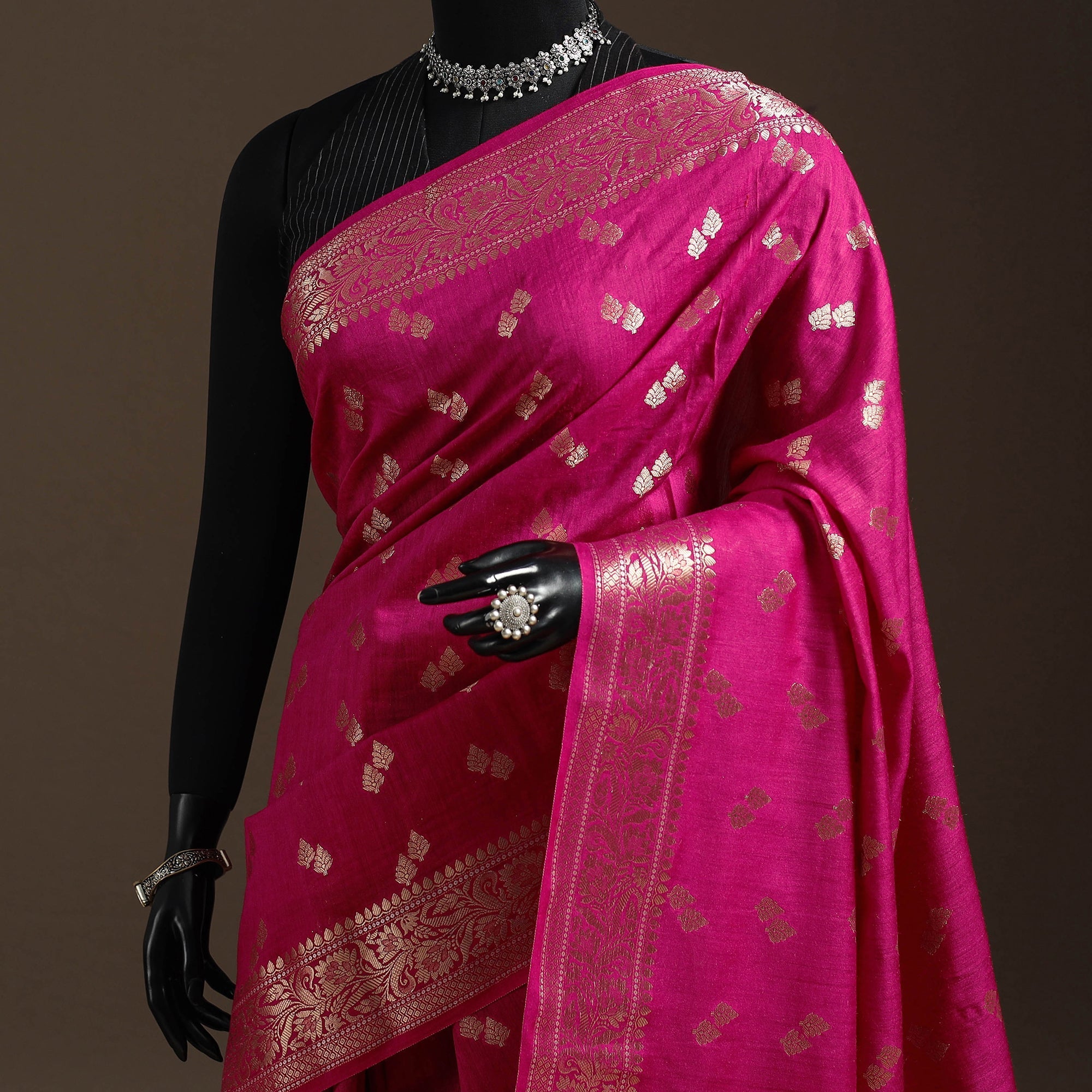 Ethnic Banarasi weaves are the finest example of the extremely skilled craftsmanship of Indian artisans that is rich in shades and patterns. Woven with gold/silver threads is the living incarnation of the abilities of our craftsmen, evolved, nurtured, and perfected over the Centuries.