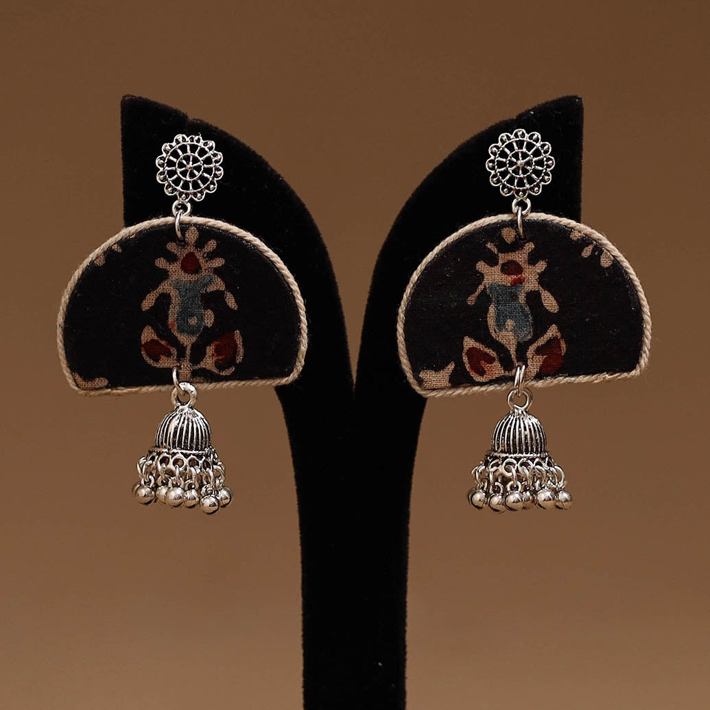Handmade fabric earrings with german silver jhumki is attached at the end, that enhances its charm. Perfect for everyday wear or special occasions, these earrings blend traditional style with a graceful touch.