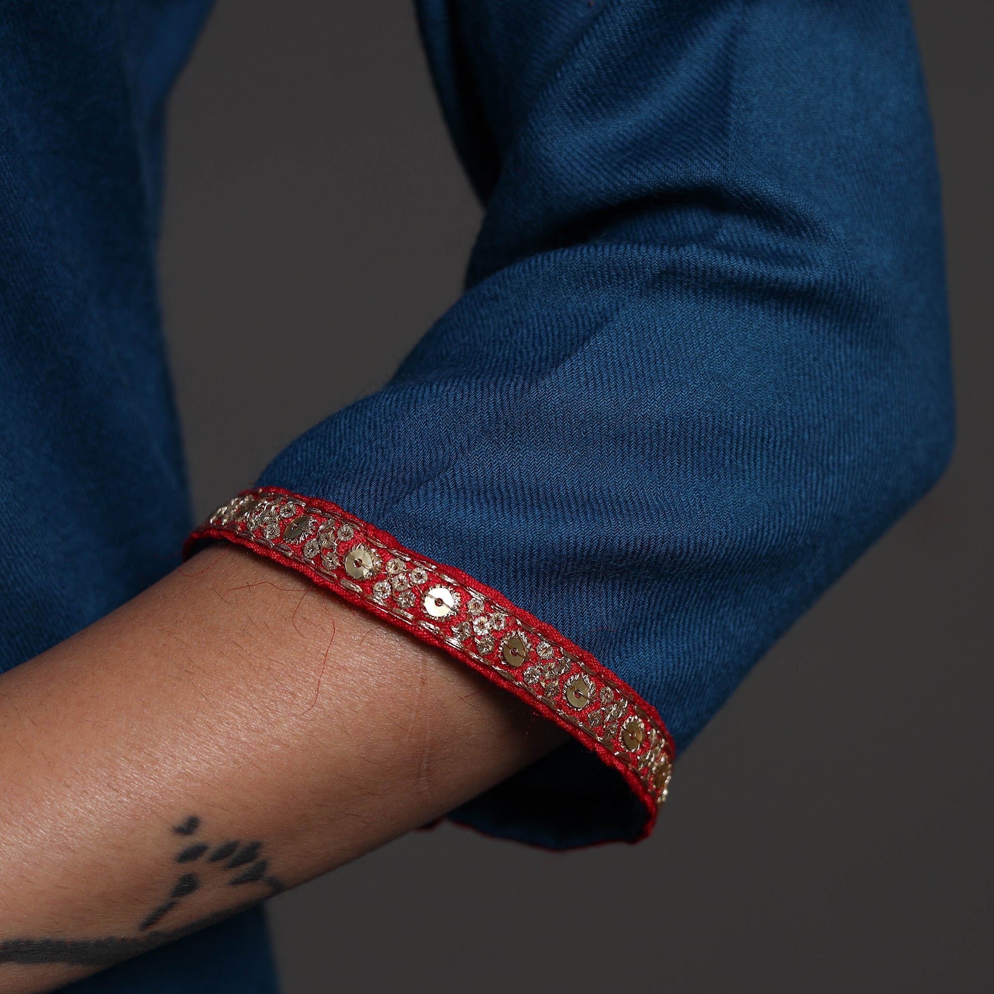 Stay warm and stylish with our elegant blue plain merino woolen straight kurta, crafted for women's who value comfort and simplicity. Made from merino wool, this plain kurta offers unparalleled warmth and coziness. Featuring a convenient side pocket for your essentials, it’s both stylish and functional. Perfect for winter occasions or casual wear.