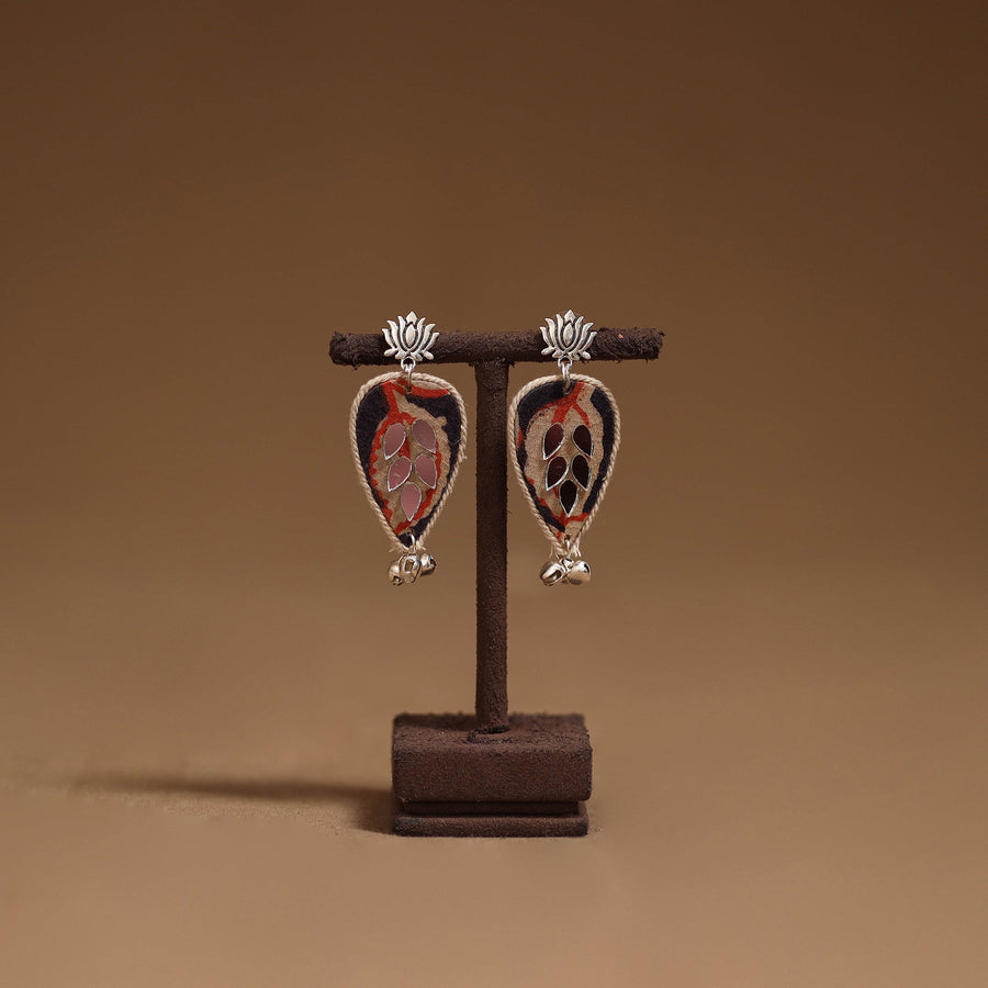 Handmade fabric earrings with german silver, mirror & ghungroo detailing enhances their charm. Perfect for everyday wear or special occasions, these earrings blend traditional style with a graceful touch.